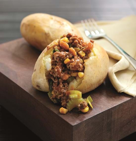 - Serve the mince piled into 4 microwaved or oven baked jacket potatoes. Sprinkle with grated cheese if desired or pile into the centre of flour tortilla wraps, roll up and eat.